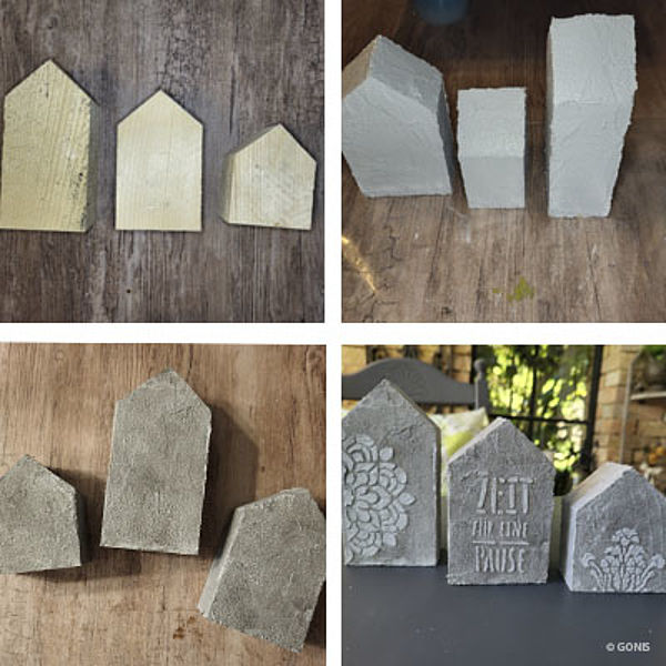 Dann tauchen wir gemeinsam in die zauberhafte Welt der Miniaturhäuschen ein! Wir verwandeln einfache Holzrohlinge in charmante Kunstwerke, indem wir sie mit BetonPaste verzieren.