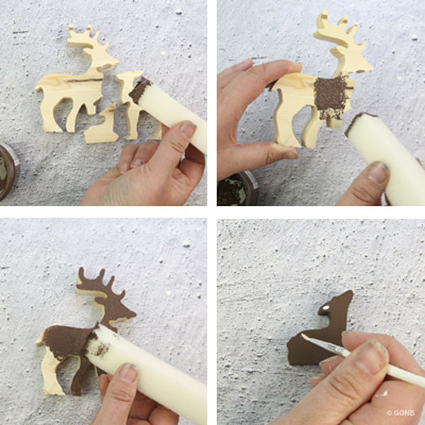 Material und Zubehör: Holz Hirschfamilie, SamtDecor Zartbitter, OutdoorDecor Weiß
