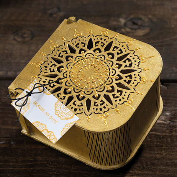 Mit nur wenigen Handgriffen wird aus einer schlichten Schatulle ein echtes Schmuckstück. Sie eignet sich perfekt als Geschenk, für Hochzeiten oder als edler Hingucker für das eigene Zuhause.