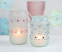 Nach dem Satinieren einfach die Gläser mit DecoPointer und einem hübschen Schleifenband dekoriert werden. Fertig sind die hübschen Windlichter für gemütliche Abende.