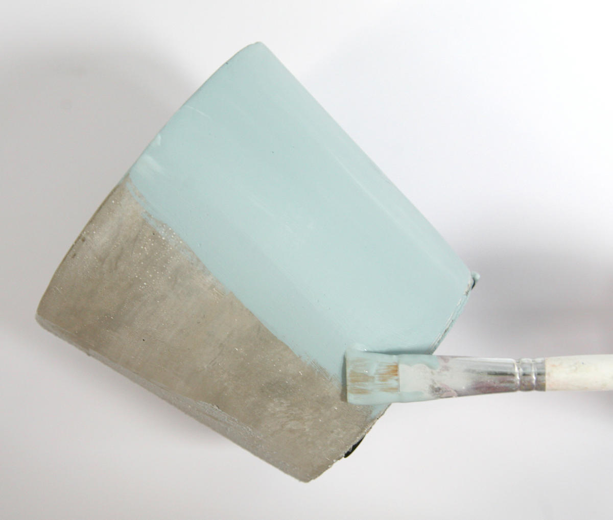 2. Mettre une couche d’apprêt OutdoorDecor vert d’eau sur le second cache-pot. Laisser sécher.