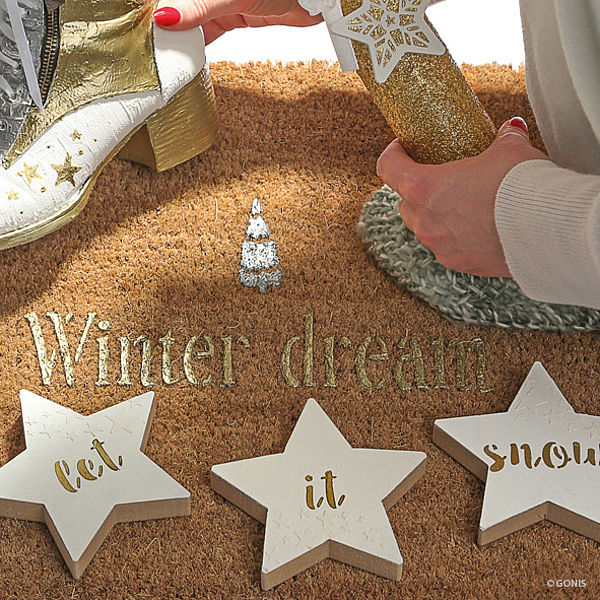1. Scrivi le parole "Winter dream" sul tappetino con GlamourCreme Oro antico usando lo stencil.